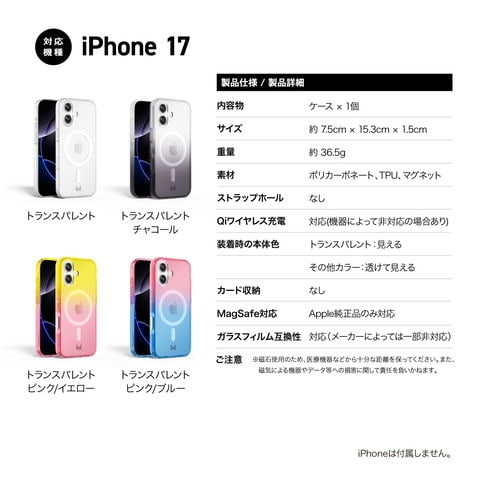 iPhone 17 ケース MagSafe 対応 耐衝撃 クリア スマホケース カメラ レンズ 保護 マグセーフ 透明 携帯ケース iPhone17 アイフォン17 対応 MONOCOZZI ESSENTIALS