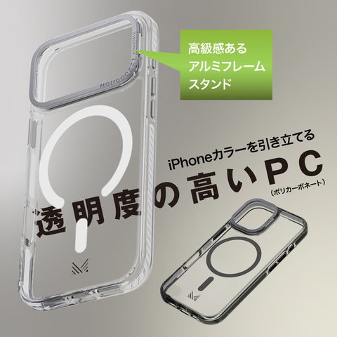 iPhone 17 Pro ケース クリア MagSafe 対応 スタンド 付き 耐衝撃 スマホケース マグセーフ 透明 携帯ケース iPhone17Pro アイフォン17Pro 対応 MONOCOZZI LUCID