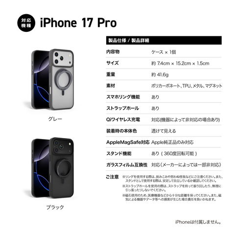 iPhone 17 Pro ケース クリア MagSafe 対応 リング スタンド 耐衝撃 スマホケース 透明 携帯ケース iPhone17Pro アイフォン17Pro 対応 MONOCOZZI #SAFEPROTECT