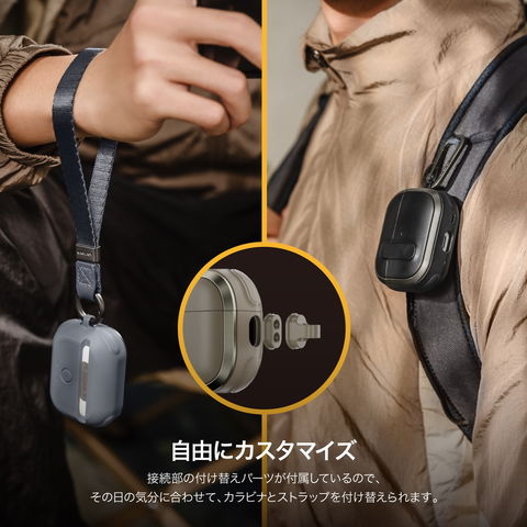 接続部の付け替えパーツが付属しているので、その日の気分に合わせて、カラビナとストラップを付け替えられます。