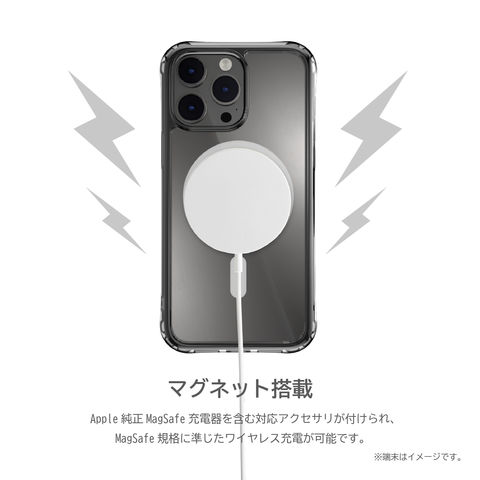 Apple純正MagSafe充電器を含む対応アクセサリが付けられ、MagSafe規格に準じたワイヤレス充電が可能です。