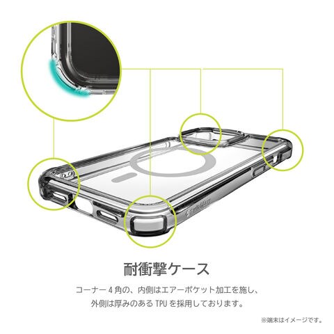 コーナー4角の、内側はエアーポケット加工を施し、外側は厚みのあるTPUを採用しております。