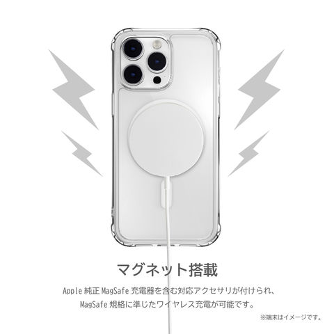 Apple純正MagSafe充電器を含む対応アクセサリが付けられ、MagSafe規格に準じたワイヤレス充電が可能です。