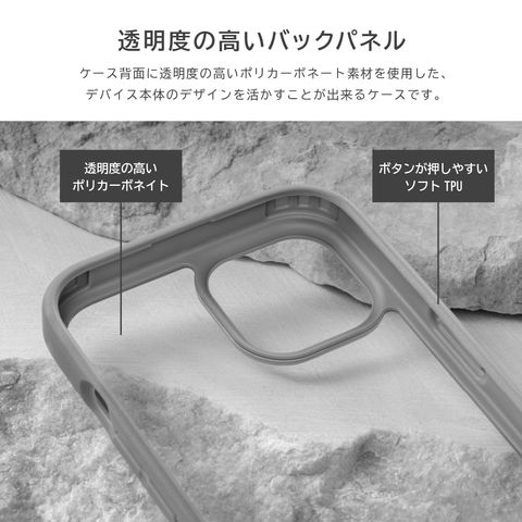 ケース背面に透明度の高いポリカーボネート素材を使用した、デバイス本体のデザインを活かすことが出来るケースです。