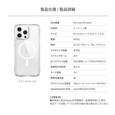 iPhone15ProMax 耐衝撃 ケース Magsafe 対応 米軍 MIL規格 耐衝撃ケース 透明 薄型 カバー iPhone15 ProMax アイフォン15 プロマックス 対応 MagEasy Atoms M