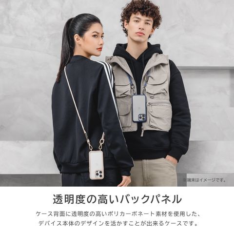 ケース背面に透明度の高いポリカーボネート素材を使用した、デバイス本体のデザインを活かすことが出来るケースです。