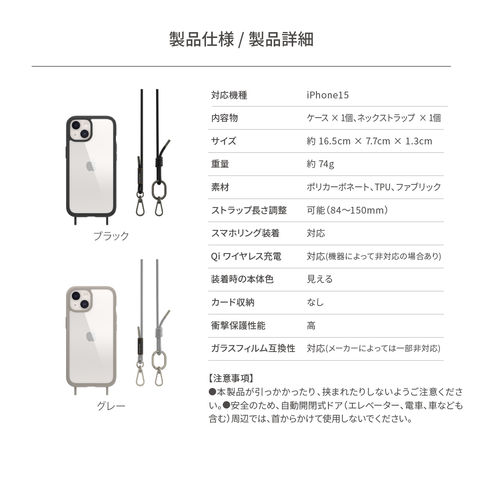 デバイスをショルダーバッグのような感覚で持ち運べるスマートフォンケースです。長さ調整可能なストラップとカラビナが付属しております。