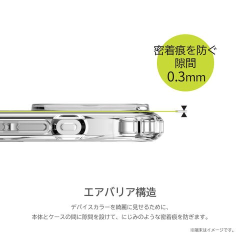 デバイスカラーを綺麗に見せるために、本体とケースの間に隙間を設けて、にじみのような密着痕を防ぎます。