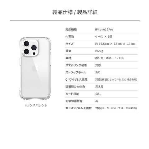 iPhone15Pro 耐衝撃 ケース 米軍 MIL規格 クリア 耐衝撃ケース 透明 薄型 UV加工 クリアケース Apple iPhone15 Pro アイフォン15 プロ 対応 MagEasy Atoms