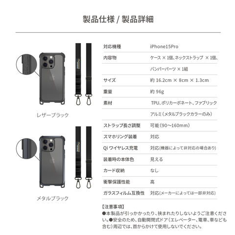 TPU、ポリカーボネート、アルミ(メタルブラックカラーのみ)、ファブリック