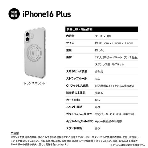 iPhone 16 Plus ケース クリア MagSafe対応 スタンド リング付き 耐衝撃 マグセーフ リング スマホケース iPhone16Plus 対応 MagEasy MagStand 360 M with Ring
