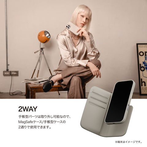 手帳型パーツは取り外し可能なので、MagSafeケース/手帳型ケースの2通りで使用できます。