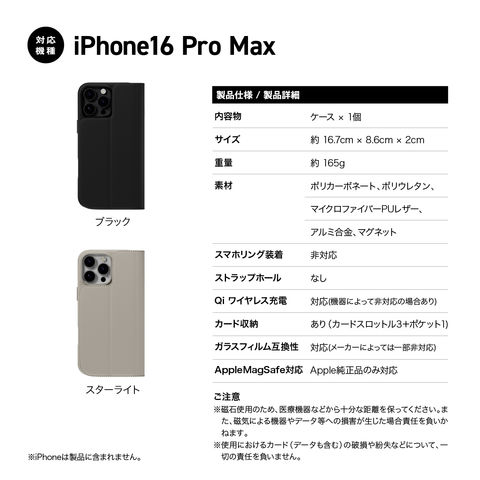 iPhone 16 Pro Max ケース MagSafe 対応 手帳型 2way 取り外し 耐衝撃 レザー スマホケース カード 収納 カバー アイフォン16 ProMax 対応 MagEasy Card Folio M