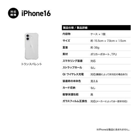 iPhone 16 ケース クリア 耐衝撃 MIL規格 スマホケース 透明 スマホカバー iPhone16 アイフォン 16 対応 MagEasy Atoms