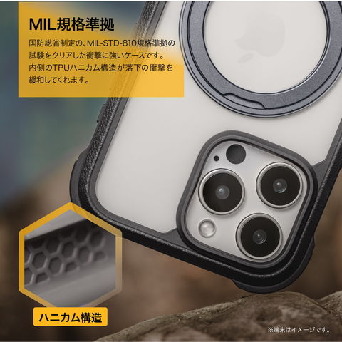 米国防総省制定の、MIL-STD-810規格準拠の試験をクリアした衝撃に強いケースです。 内側のTPUハニカム構造が落下の衝撃を緩和してくれます。