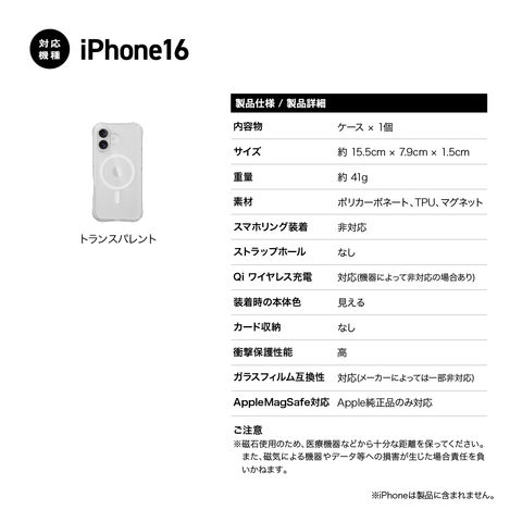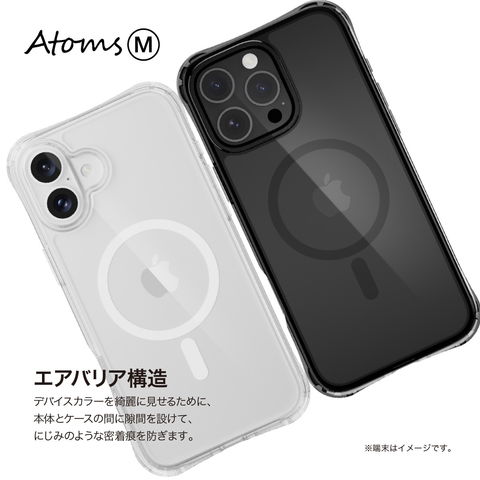 iPhone 16 ケース MagSafe 対応 クリア 耐衝撃 スマホケース 透明 スマホカバー iPhone16 アイフォン 16 対応 MagEasy Atoms M