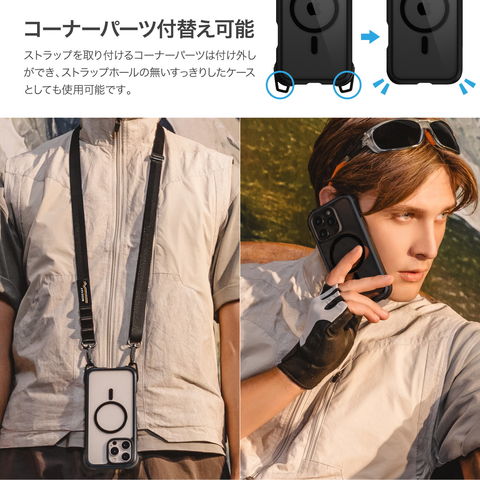 iPhone 16 Pro ケース ショルダー ストラップ 付き クリア MagSafe 対応 耐衝撃 MIL規格 マグセーフ スマホケース iPhone16Pro 対応 MagEasy Odyssey +Strap M