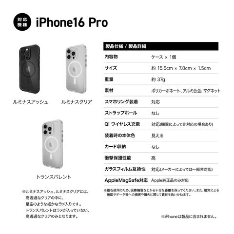 iPhone 16 Pro ケース クリア MagSafe 対応 耐衝撃 MIL規格 マグセーフ スマホケース iPhone16Pro アイフォン16 プロ 対応 MagEasy Bright M