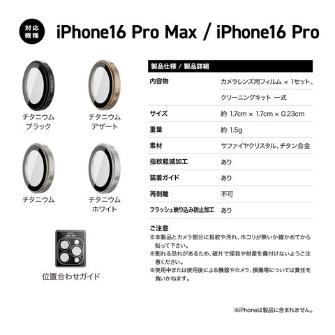 iPhone 16 Pro Max アイフォン16 Pro カメラ保護 フィルム 指紋 傷 防止 チタン サファイア クリスタル カメラ レンズカバー iPhone16ProMax 対応 MagEasy Lenz