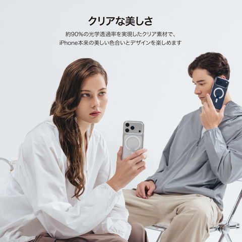 約90%の光学透過率を実現したクリア素材で、iPhone本来の美しい色合いとデザインを楽しめます。