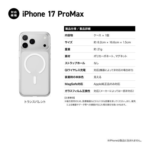 iPhone 17 Pro Max ケース MagSafe 対応 薄型 クリア スマホケース 極薄 マグセーフ 透明 携帯ケース iPhone17ProMax アイフォン 17ProMax 対応 MagEasy Cryst M