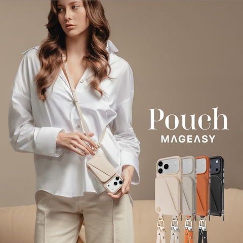 iPhone 17 Pro Max ケース ショルダー ストラップ 付き カード入れ 合成 皮 革 スマホケース カバー iPhone17ProMax アイフォン 17ProMax 対応 MagEasy Pouch