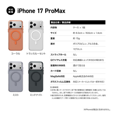 iPhone 17 Pro Max ケース MagSafe 対応 薄型 クリア スマホケース 極薄 マグセーフ 透明 携帯ケース iPhone17ProMax アイフォン 17ProMax 対応 MagEasy Lyte M