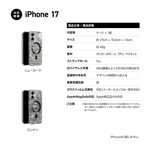 iPhone 17 ケース MagSafe 対応 クリア 地図 耐衝撃 スマホケース おしゃれ かわいい マグセーフ 携帯ケース iPhone17 アイフォン17 対応 MagEasy Urban M