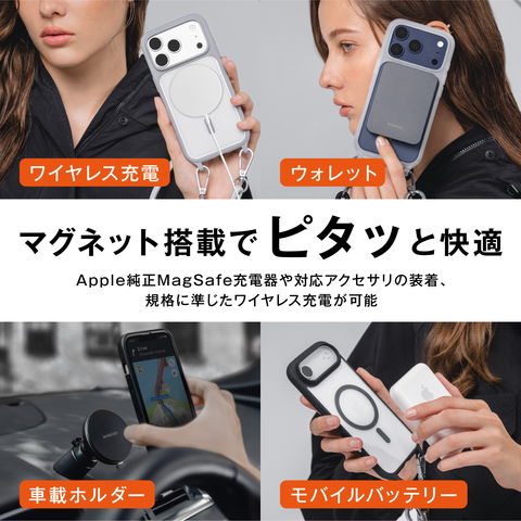 iPhone 17 Pro ケース ショルダー ストラップ 付き クリア MagSafe 対応 耐衝撃 マグセーフ スマホケース iPhone17Pro アイフォン17Pro 対応 MagEasy Roam M
