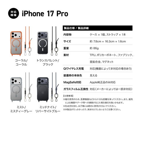 iPhone 17 Pro ケース ショルダー ストラップ 付き クリア MagSafe 対応 耐衝撃 マグセーフ スマホケース iPhone17Pro アイフォン17Pro 対応 MagEasy Roam Mのレビュー