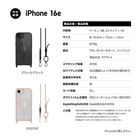 iPhone 16e ケース ショルダー ストラップ 付き クリア マグネット リング付き 耐衝撃 スマホケース カバー iPhone16e アイフォン16 e 対応 MagEasy Roam M