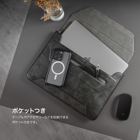 ノートパソコン 13インチ 14インチ ケース スタンド 機能 収納 ポケット 付 薄型 パソコンケース MacBook ノートPC 13 13.3 14 インチ 対応 MagEasy ERGOSTAND