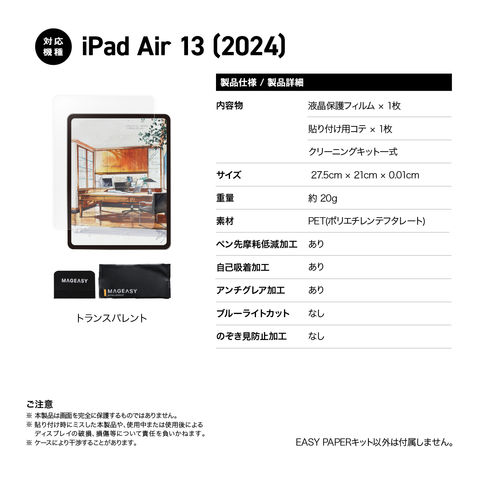 iPad Air 13インチ M3 2025 M2 フィルム ペーパーライク アンチグレア 映り込み 防止 保護フィルム iPadAir アイパッドエアー 13 2024 対応 MagEasy EasyPaper