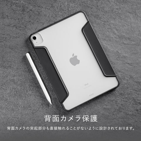 背面カメラの突起部分も直接触れることがないように設計されております。