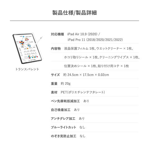 液晶保護フィルム 1枚、ウエットクリーナー × 1枚、ホコリ取りシール × 1枚、クリーニングワイプス × 1枚、位置決めシール × 1枚、貼り付け用コテ × 1枚