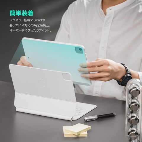 マグネット搭載で、iPadやApple純正キーボードにぴったりフィットします。