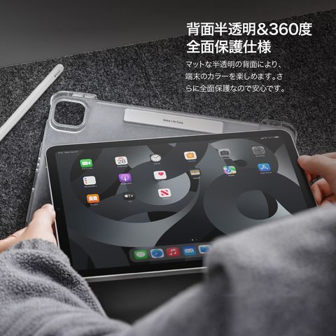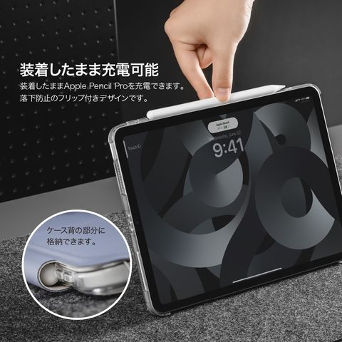 装着したままApplePencilProを充電できます。落下防止のフリップ付きデザインです。