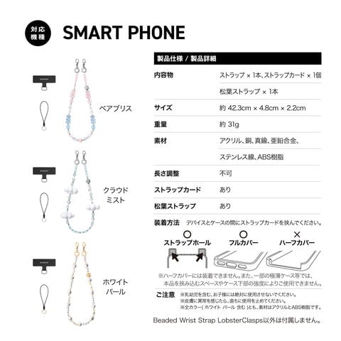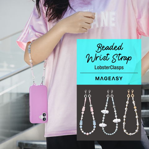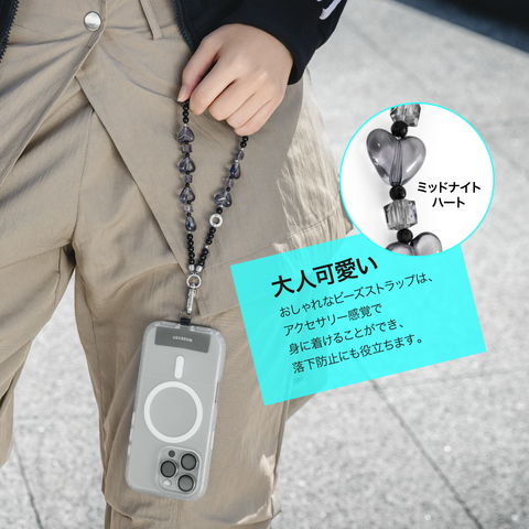 ストラップ ビーズ スマホストラップ ちぎれない ホルダー 付 手首 ハンドストラップ アクセサリー iPhone カメラケース 対応 MagEasy Beaded Wrist Strap LC