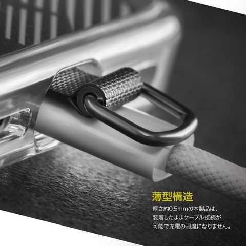 厚さ約0.5mmの本製品は、装着したままケーブル接続が可能で充電の邪魔になりません。