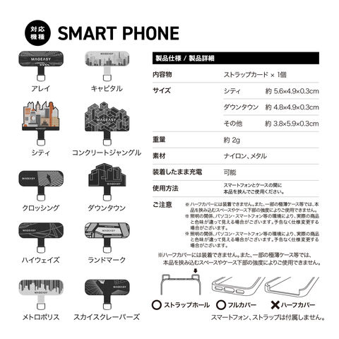 スマートフォンとケースの間に本製品を挟むだけでストラップを使用できます。※ハーフカバーのケースではご使用いただけません。