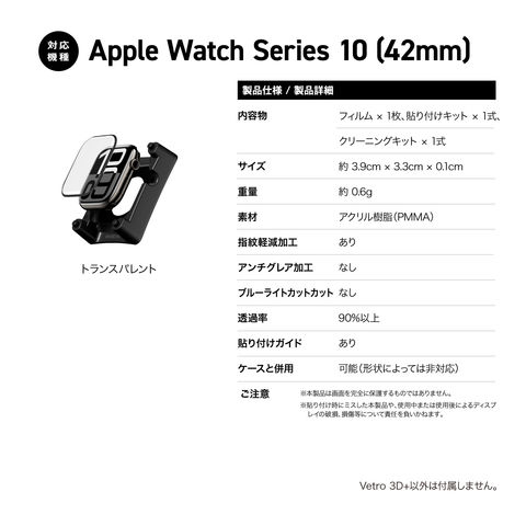 Apple Watch 11 フィルム 画面 保護フィルム 簡単 貼付け ガイド付き 指紋防止 加工 AppleWatch 10 42mm アップルウォッチ Series 10 対応 MagEasy Vetro 3D+