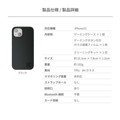 ゲーミングケース × 1個、ゲーミングボタン付きガラス保護フィルム × 1枚、クリーニングキット × 1式