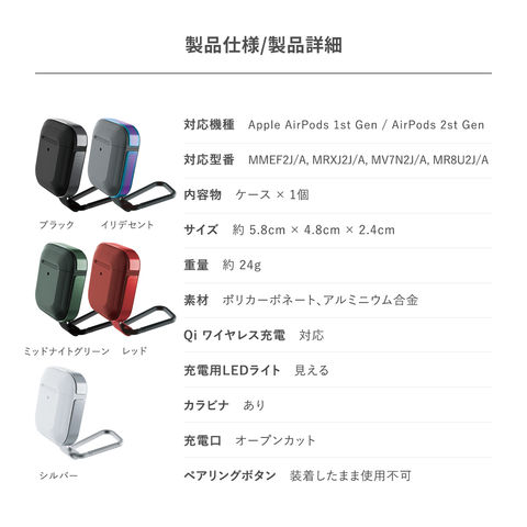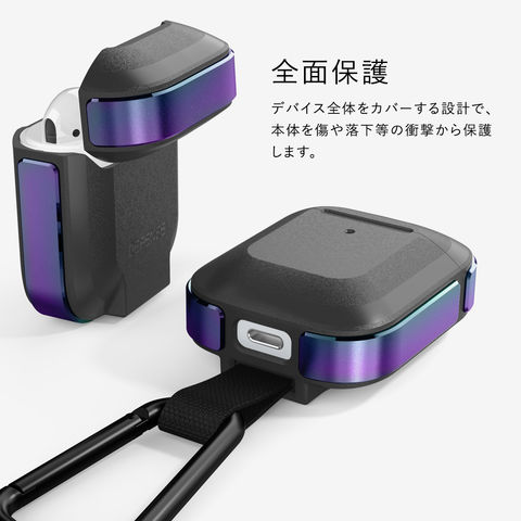 AirPods ケース 耐衝撃 アルミ カラビナ 付き カバー アルミ × PC 衝撃吸収 ケースカバー AirPods1 AirPods2 エアーポッズ エアーポッツ 対応 RAPTIC Trek