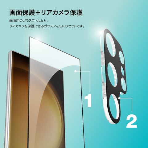 画面用のガラスフィルムと、リアカメラを保護できるガラスフィルムのセットです。