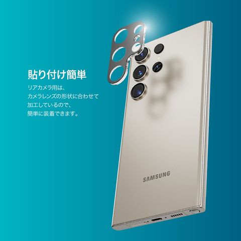 リアカメラ用は、カメラレンズの形状に合わせて加工しているので、簡単に装着できます。