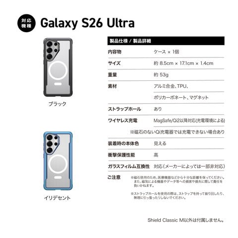 Galaxy S26 Ultra ケース 耐衝撃 クリア MagSafe対応 PC アルミ 素材 GalaxyS26Ultra ギャラクシーS26 Ultra SM-S948Q SC-53G SCG37 対応 RAPTIC Shield Classic