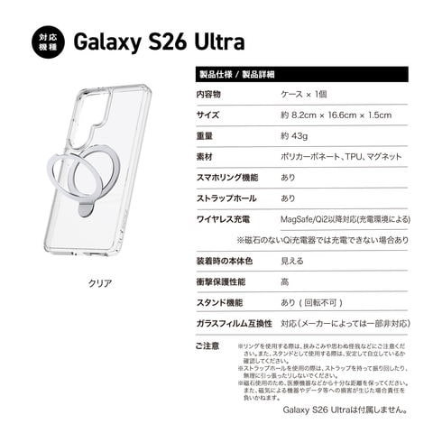 Galaxy S26 Ultra ケース クリア リング スタンド MagSafe 対応 耐衝撃 スマホケース ギャラクシーS26 Ultra SM-S948Q SC-53G SCG37 対応 RAPTIC Air Stand