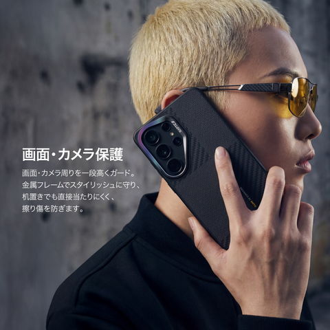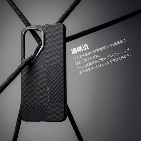 アラミド繊維+耐衝撃層などの層構造で、薄さと強さを両立。さらに衝撃吸収に優れたTPUフレームが、落下のダメージをしっかり受け止めます。