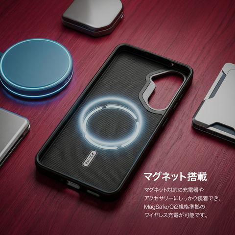 マグネット対応の充電器やアクセサリーにしっかり装着でき、MagSafe/Qi2規格準拠のワイヤレス充電が可能です。