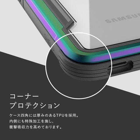 ケース四角には厚みのあるTPUを採用。内側にも特殊加工を施し、衝撃吸収力を高めております。
